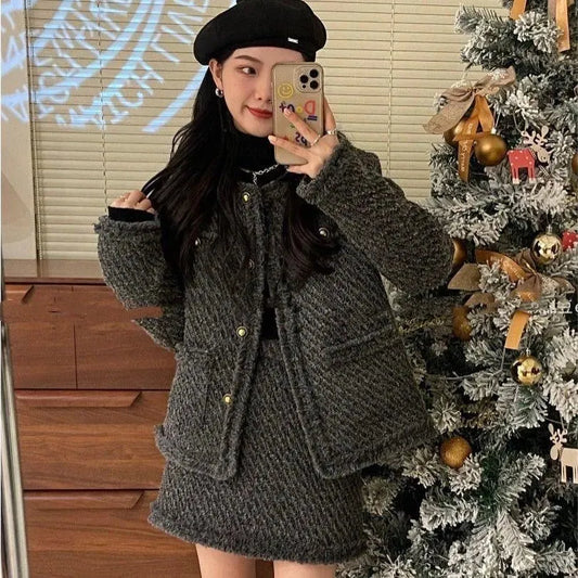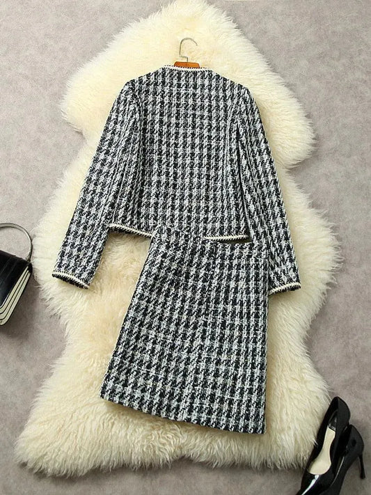 Tailleur jupe en tweed à carreaux jacquard pour femme Tailleur jupe en tweed à carreaux jacquard pour femme