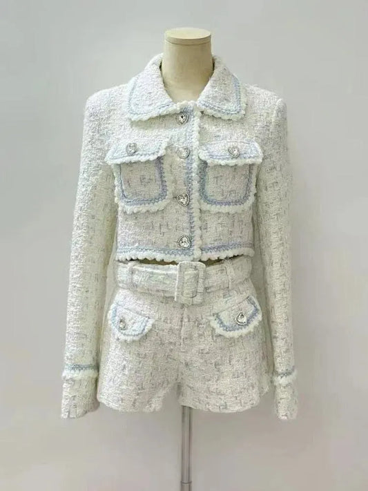 Costume short en tweed à poches à rabat pour femme Costume short en tweed à poches à rabat pour femme