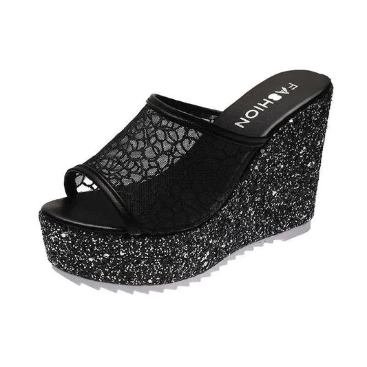 Sandales compensées à enfiler avec plateforme en maille Sandales compensées à enfiler avec plateforme en maille