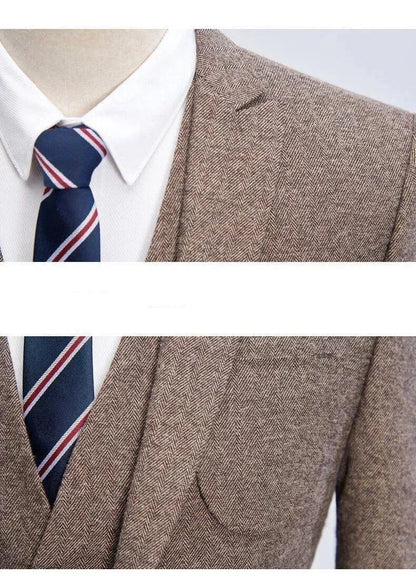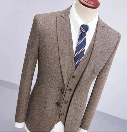 Discover the luxurious Big Business Tweed 3 Piece Suit with unbeatable style. Whether you're after 3-Piece Suits, Tweed Suits, or Plain Suits, this collection offers a Slim Fit Tweed Suit with Plain-Solid elements, a crisp Single-Breasted Tweed Suit, and a Formal-Business Tweed Suit that is sure to turn heads. Get yours now from LeStyleParfait , with its Long Sleeves and V-Neck detailing.