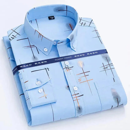 Stay sharp and stylish with this men’s stripes print dress shirt, designed for a sleek and modern look. Crafted from a lightweight blend of polyester and spandex, this non-iron, wrinkle-resistant shirt offers effortless maintenance and a crisp finish all day. Featuring a slim fit design, a button-down collar, and a single-breasted closure, this business-casual shirt from LeStyleParfait is perfect for spring and autumn wear. Whether paired with tailored trousers or jeans, this thin and breathable striped shirt is a must-have for the modern professional.