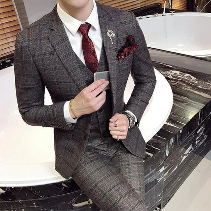Office Ready Plaid Three Piece Suit