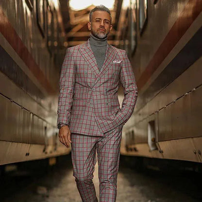 Red Plaid Double-Breasted Two Piece Suit