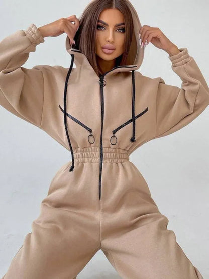 LeStyleParfait presents the Cozy Women Casual Zip Two-Piece Set in timeless beige and black colorways, crafted for ultimate lounge appeal. This women's outfit set features a hoodie top with zip-up closure and jogger-style bottoms that ensure a coordinated yet effortless look for cooler days.
