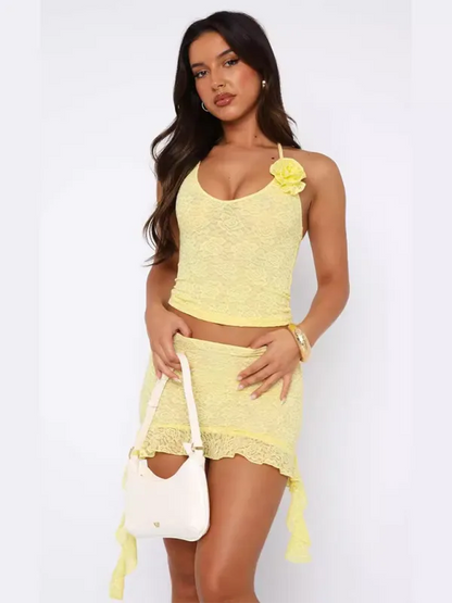 Chic Women Casual Lace Skirt Set