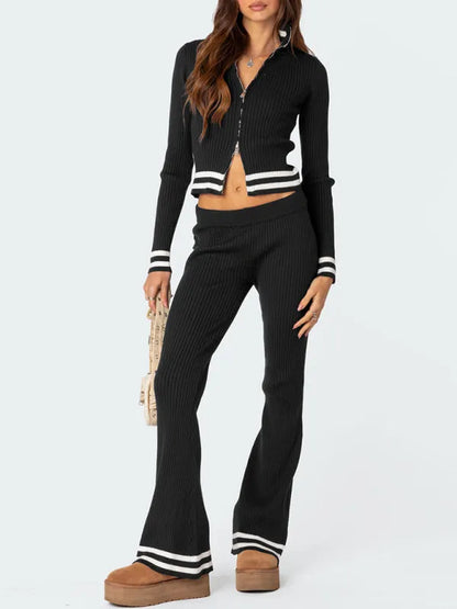 This two-piece set from LeStyleParfait combines contemporary charm with everyday comfort. Offered in soft pink and white, the set features a zipper crop top and high-waist wide-leg pants in a solid ribbed texture. It's an ideal blend of modern flair and casual sophistication.