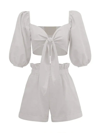 Elegant Women Casual Knot Two-Piece Shorts Set - Casual Shorts Set - LeStyleParfait
