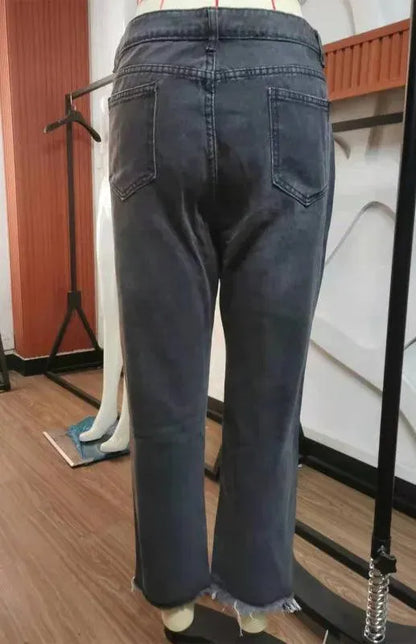 Edgy Casual Women Jeans - Mid-Rise Ripped