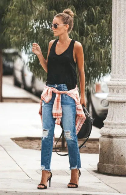 Step into confidence with our Women Ripped Jeans Pants. Designed for power moves and weekend escapes alike.