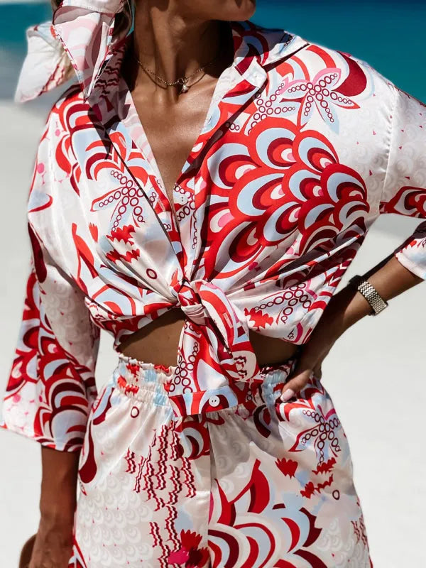 Chic Women Tropical Collar Two-Piece Shorts Set