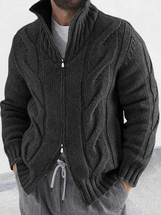 Cable Zipper Men Cardigan Turtleneck Sweater
